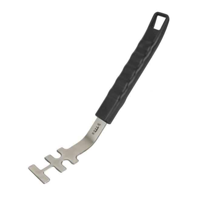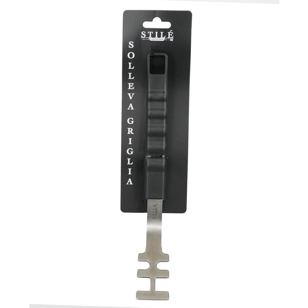Realizzato interamente in acciaio inox, è resistente al calore, anticorrosione e costruito per durare nel tempo, anche con utilizzi intensivi all’aperto. Le sue dimensioni 27,5 x 4,5 x 5 cm lo rendono maneggevole e facile da usare, mentre la particolare forma della punta è pensata per agganciare la griglia in modo sicuro senza scivolare.
