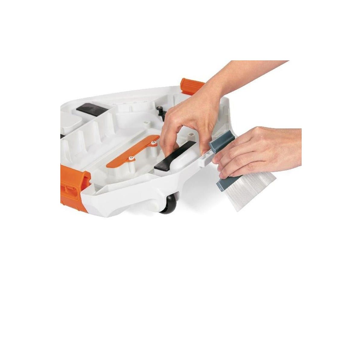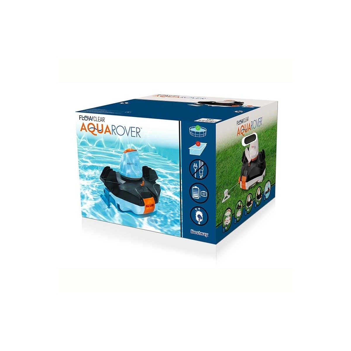 L'Aquarover Flowclear è un robot pulitore per piscina che farà il lavoro sporco al tuo posto, mantenendo immacolata tua piscina. Il funzionamento non potrebbe essere più semplice, il dispositivo è controllato con un unico interruttore di alimentazione e include sensori integrati che suggeriscono al robot di iniziare la pulizia quando è immerso in acqua e di spegnersi quando è fuori dall acqua, proteggendo il motore e migliorandone la durata. Il robot incorpora un serbatoio per i detriti di 4 L (1 gal.) di capacità, cosa che ne ottimizza i tempi di operatività prima che debba essere svuotato nuovamente. L'Aquarover è dotato di una spazzola a clip per movimentare i detriti prima che questi vengano aspirarti: in tal modo l aspiratore è in grado di rimuovere completamente lo sporco presente nella piscina. L'Aquarover Flowclear ha una autonomia di ben 90 minuti a carica completata, il tempo ottimale per la pulizia della piscina. Questo robot cordless è progettato per una gamma completa di movimento; il sistema brevettato di getto direzionale gli consente di effettuare virate di 180 gradi e cambiare direzione quando incontra muri o ostacoli. Inoltre, le clip di bloccaggio rendono la manutenzione e la pulizia un gioco da ragazzi: basta aprire lo scomparto e rimuovere i detriti dal filtro in acciaio inox. Come tocco finale, l'Aquarover ha una luce a LED per l'uso notturno e un kit di recupero che ti evita di doverti immergere nella piscina per recuperarlo a pulizia terminata. Ideale per piscine circolari di diametro pari o inferiore a 7,32 m o piscine rettangolari di 9,65 m di lunghezza o inferiori.