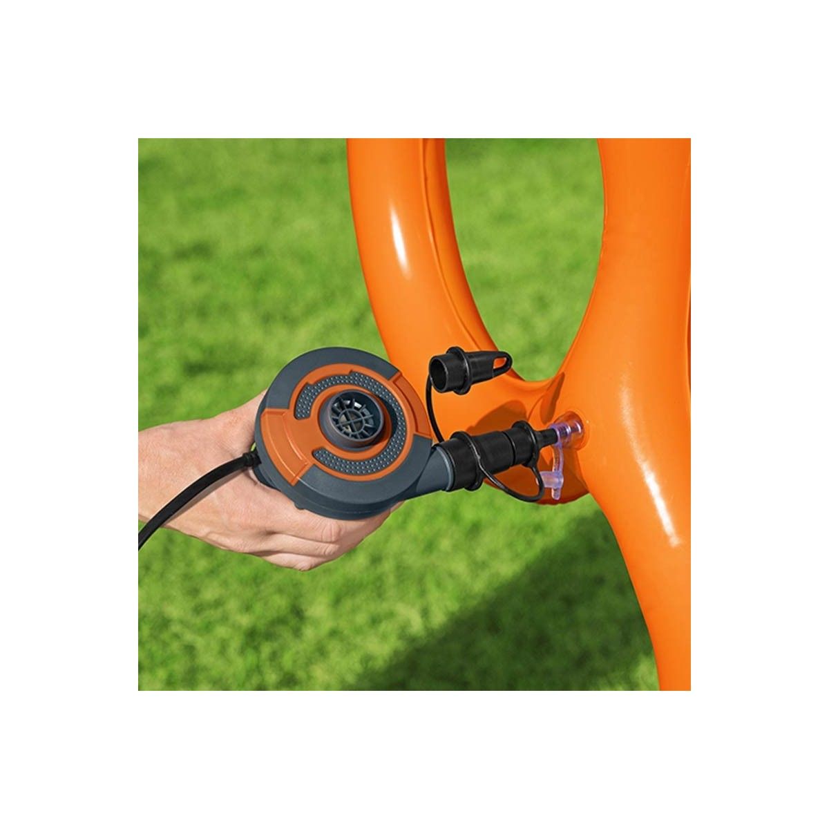 Potete alimentarla sia tramite una presa di corrente domestica da 220V, rendendo comodissimo l'uso in casa, sia tramite una presa d'auto da 12V, che vi permette di portare la pompa con voi ovunque andiate. La pompa d'aria elettrica Bestway è dotata di una camera d'aria ampia, che consente un gonfiaggio rapido e senza intoppi.