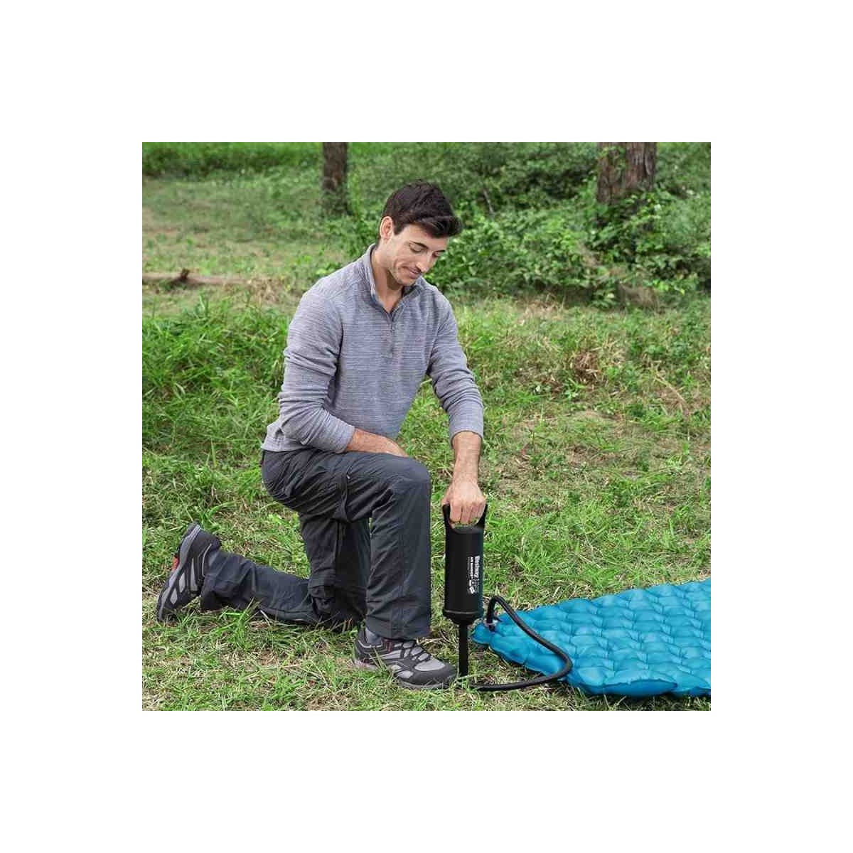Progettata per semplificare il processo di gonfiaggio, questa pompa è un must-have per ogni avventura all'aria aperta. Con la sua ampia camera d'aria, questa pompa offre un gonfiaggio rapido e efficiente, permettendoti di prepararti per l'azione in un batter d'occhio. Il tubo flessibile ti offre la flessibilità necessaria per raggiungere facilmente le valvole di gonfiaggio, garantendo una maggiore comodità durante l'uso. Inoltre, con i suoi 3 adattatori per valvole inclusi, questa pompa si adatta a una vasta gamma di gonfiabili.