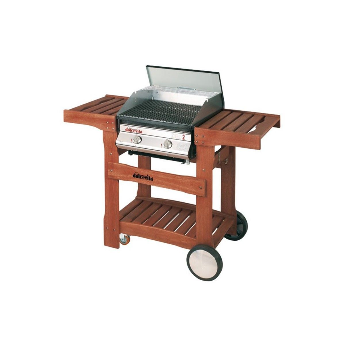 Carrello in Legno di eucalipto con due ripiani. Adatto per il barbecue Euro 2 Dolcevita.