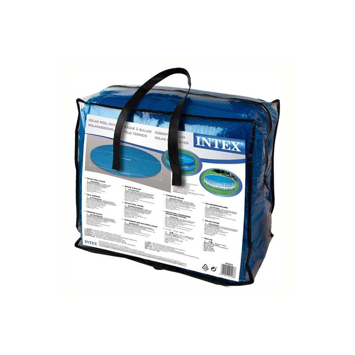 Questo telo di copertura termico Intex è realizzato con un materiale plastico in grado di immagazzinare il calore dei raggi solari, mantenendo la temperatura dell'acqua immutata durante il giorno e rilasciandola durante la notte, evitando abbassamenti di temperatura dell'acqua. Il telo termico di copertura, galleggiando sull'acqua impedisce a foglie e a insetti di posarsi sull'acqua mantenendola limpida e ben pulita, inoltre è facile da posizionare e ancora più semplice da richiudere quando non utilizzato.