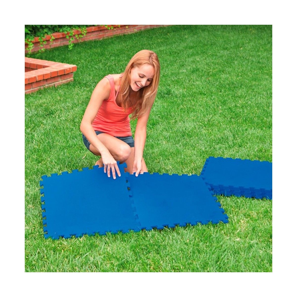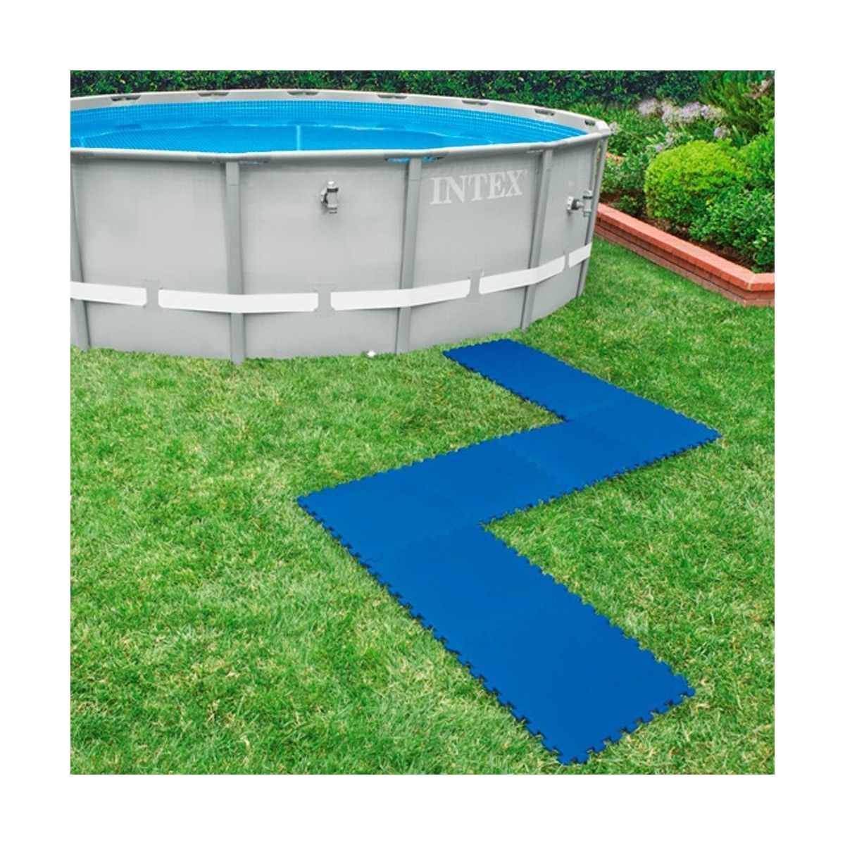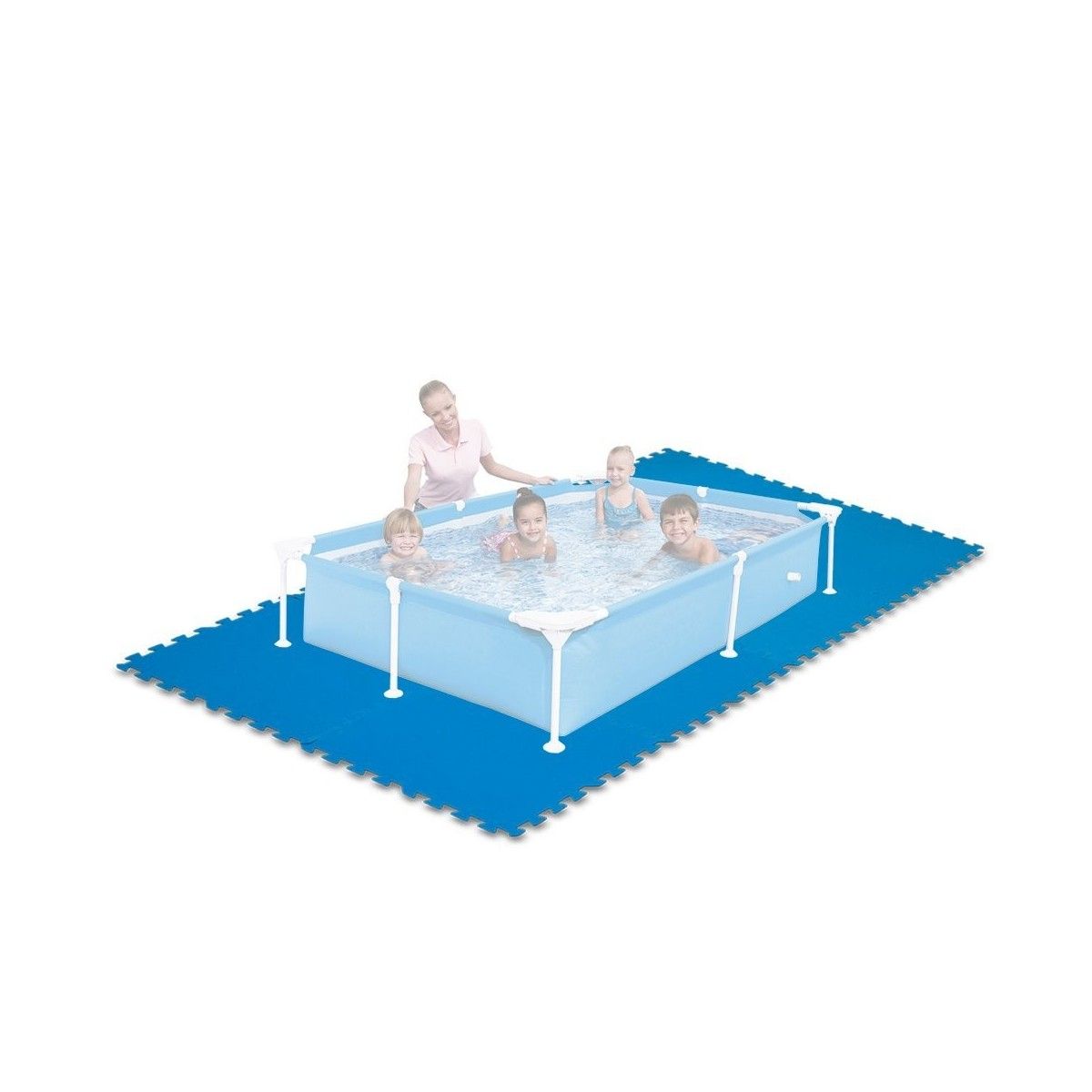 Tappeto antiscivolo composto da piastrelle 50x50 cm ad incastro realizzato in polietilene resistente, componendole copre una metratura di 2 mq. Adatto ad essere posizionato sulla superficie di montaggio della piscina e intorno ad essa per garantire maggiore protezione. Facilmente montabile e trasportabile.
