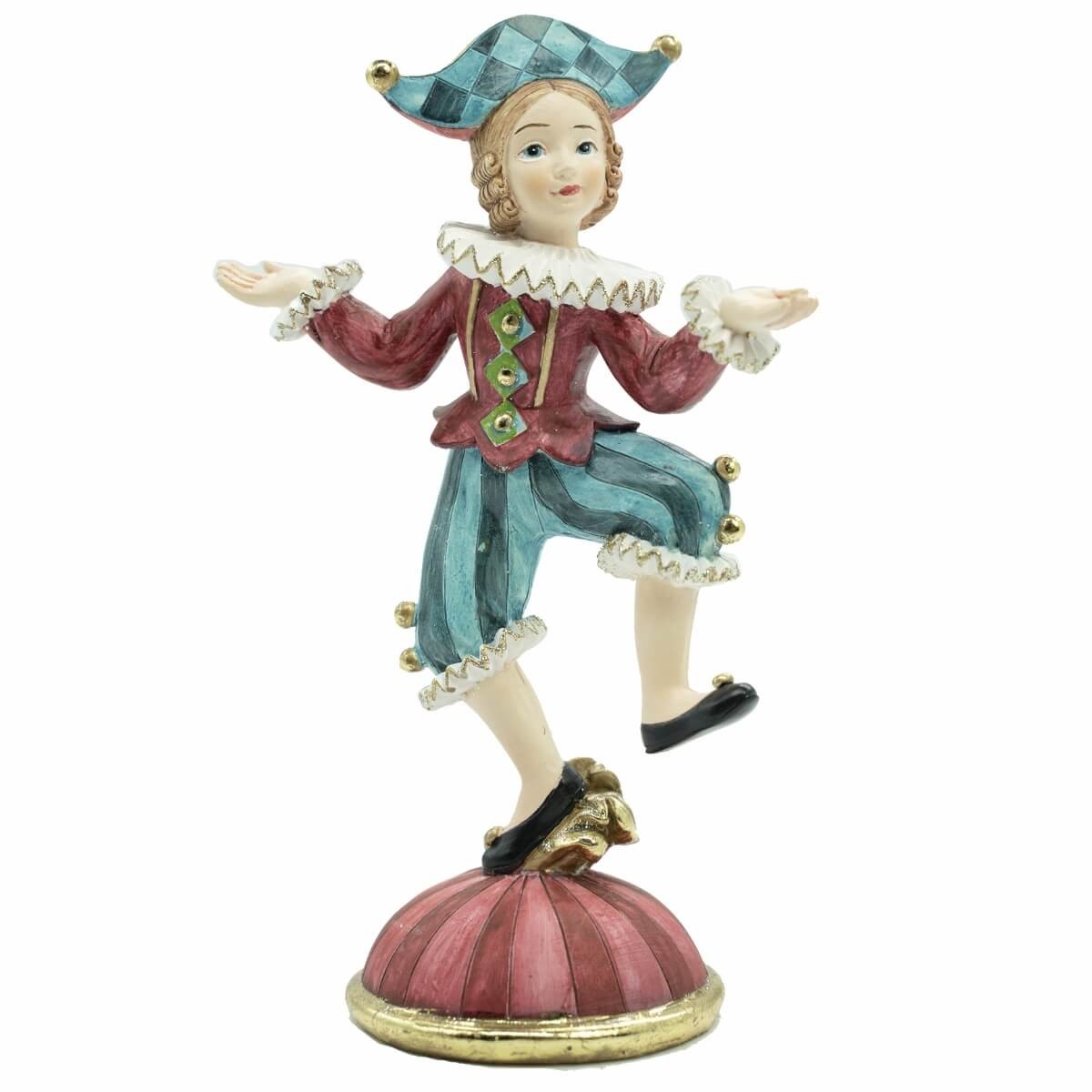 Aggiungi un tocco di allegria e raffinatezza alle tue decorazioni natalizie con questi eleganti clown in resina alti 16 cm. Disponibili in due modelli, ciascuno caratterizzato da abiti vivaci con dettagli dorati e finiture curate, sono perfetti per creare ambientazioni natalizie originali e scenografiche. Queste figure richiamano lo stile vintage dei giocolieri da circo e si abbinano facilmente sia ad allestimenti tradizionali che a decorazioni in stile classico o fiabesco.