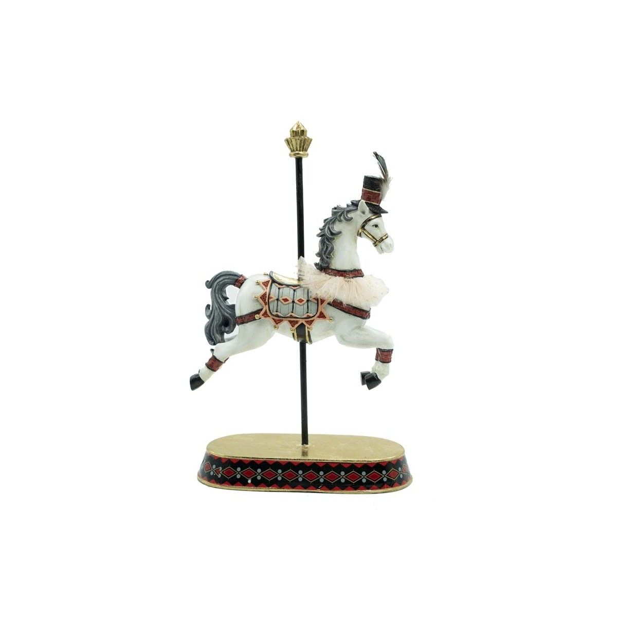 Cavallo Bianco Natalizio con Cappello – Decoro Elegante con Base in Resina e Supporto in Metallo H.30 cm