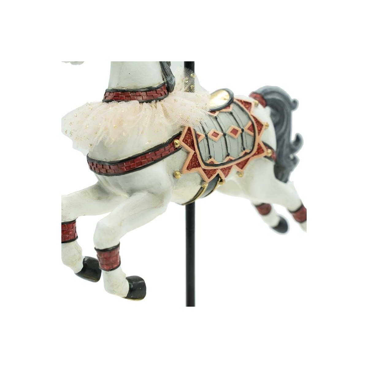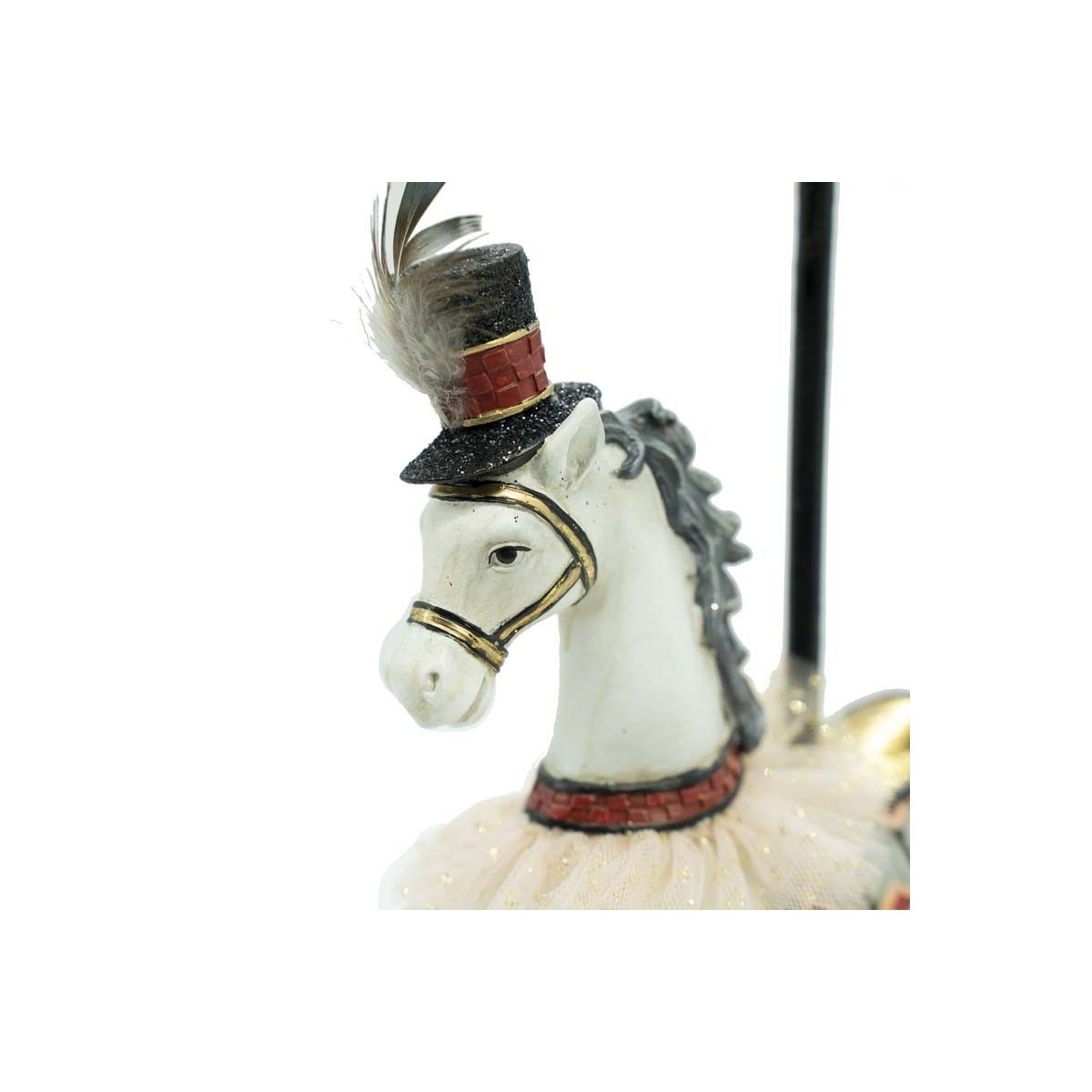 Il cavallo, impreziosito da dettagli curati e dal cappello in stile festoso, rappresenta un tocco di originalità per arricchire l’albero di Natale, un tavolo imbandito o un angolo speciale della tua casa. Le sue dimensioni, 20 x 9 x H 30 cm, lo rendono perfetto per essere ammirato senza risultare ingombrante.