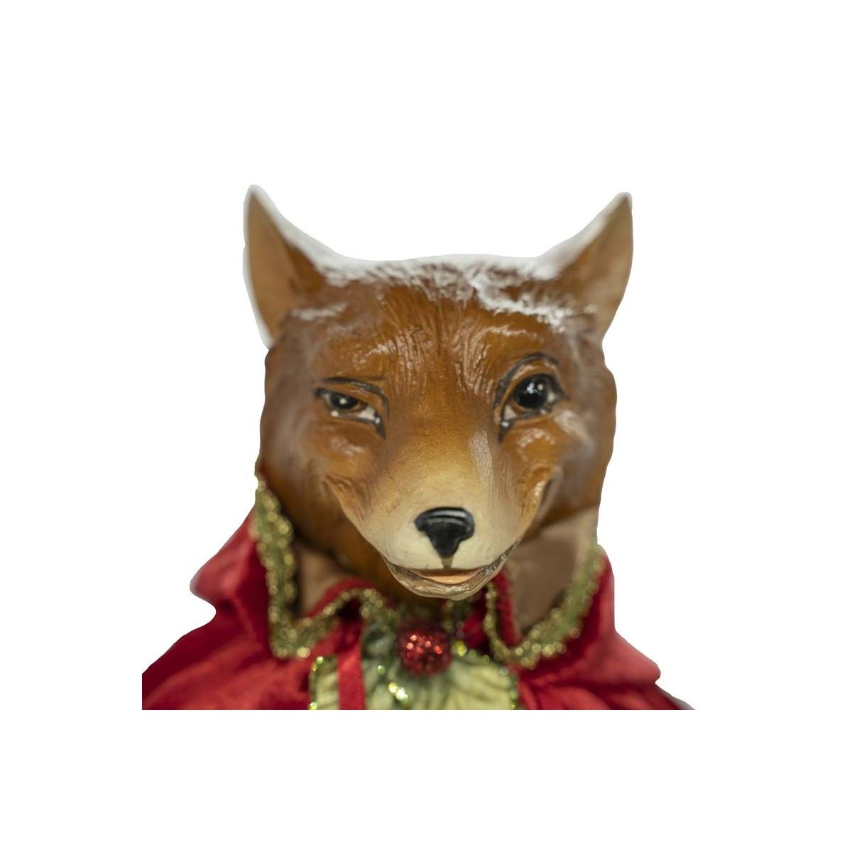 - Volpe con mantello in velluto rosso e oro su stand