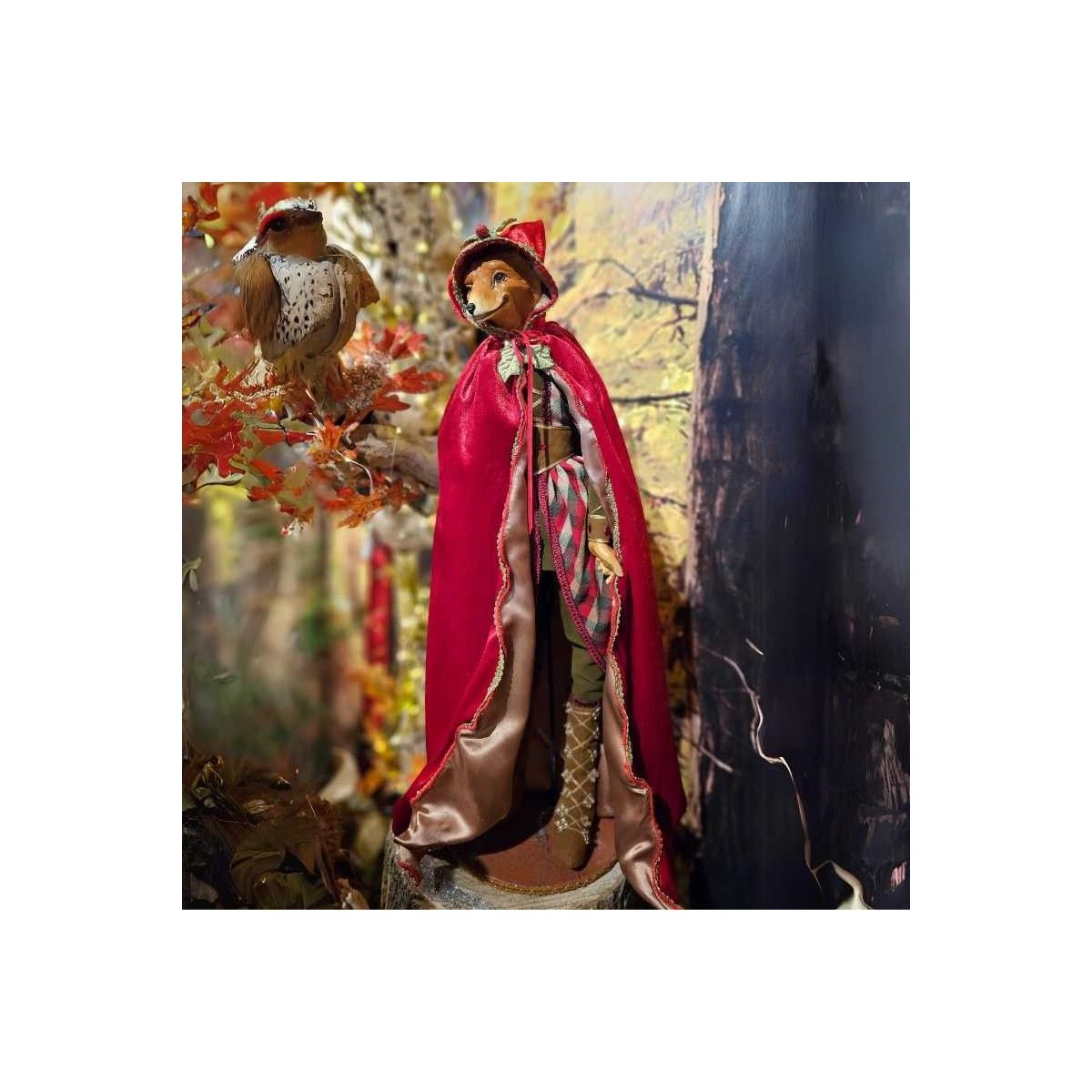 Volpe con Mantello in Velluto Rosso e Oro su Stand H.62 cm
