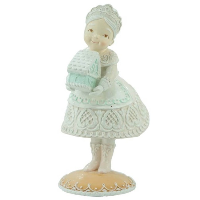 Realizzata in resina di alta qualità, si distingue per le finiture curate, i dettagli in rilievo e le tonalità delicate che richiamano l’estetica dei dolci natalizi fatti in casa. Con la sua altezza di 33 cm, è perfetta come decorazione da appoggio su mobili, consolle, tavoli festivi o come elemento centrale di un villaggio di Natale.