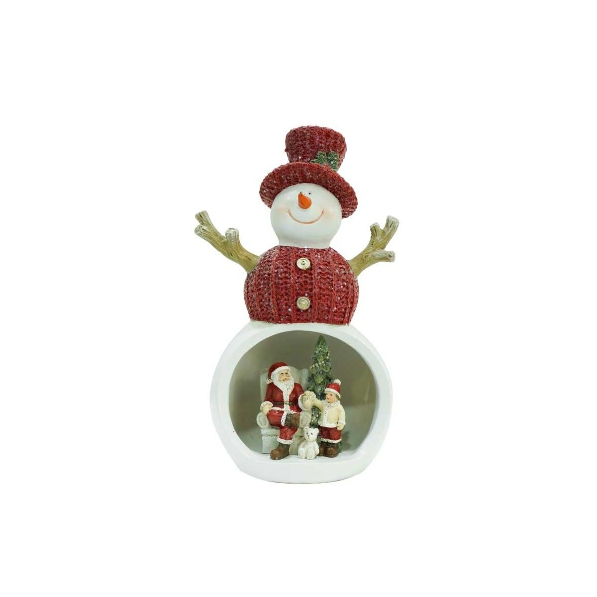 Pupazzo di Neve con Scena Natalizia Interna e Luci led H.18 cm