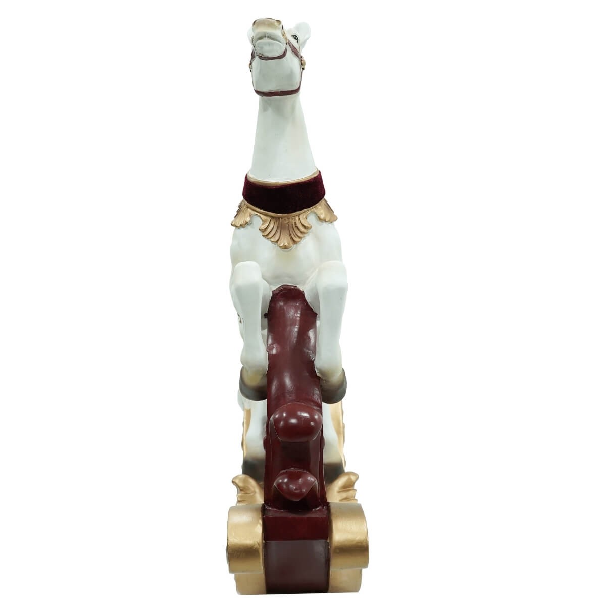 Cavallo Rampante Natalizio con Base a Dondolo in Resina – Decoro Elegante con Dettagli Oro, Bordeaux e Verdi