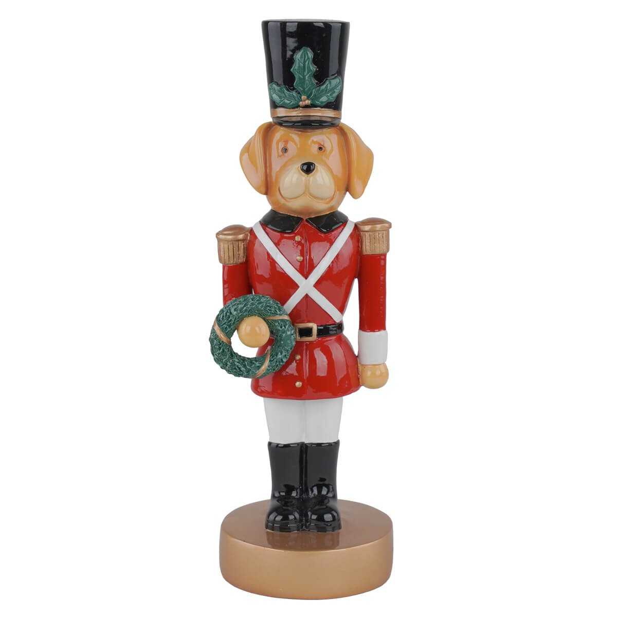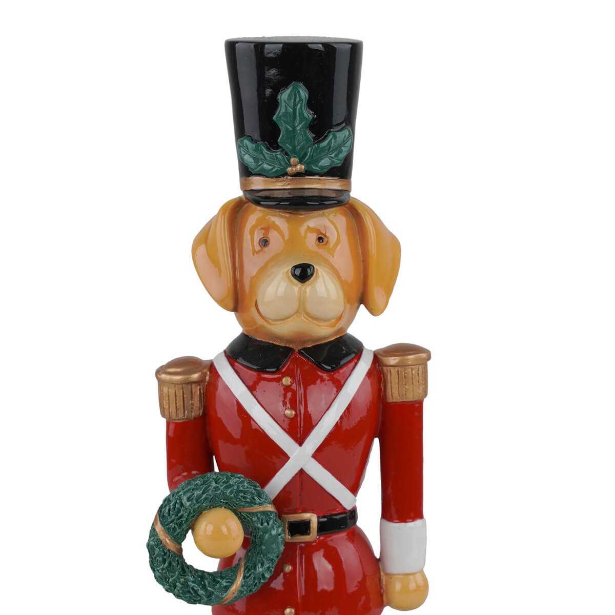 Cane Schiaccianoci Natalizio in Resina con Ghirlanda H.25,5 cm