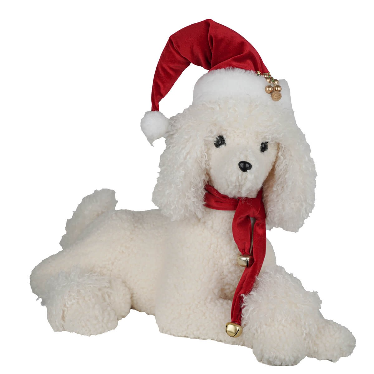 Barboncino Natalizio Bianco con Cappello e Sciarpa H.37 cm