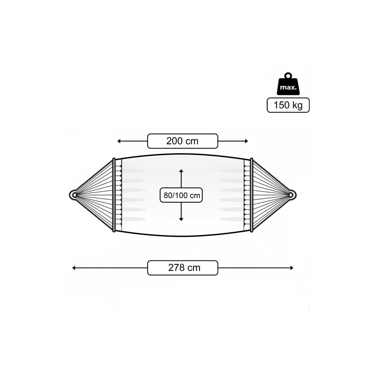 Amaca realizzata in cotone per una maggiore sensazione di comodità e morbidezza; perfetta per rilassarsi all'aperto in totale sicurezza dato che può sostenere un peso fino a 150 kg. Il montaggio è estremamente semplice, infatti impiegherete solo pochi minuti prima di potervi godere il vostro meritato relax.