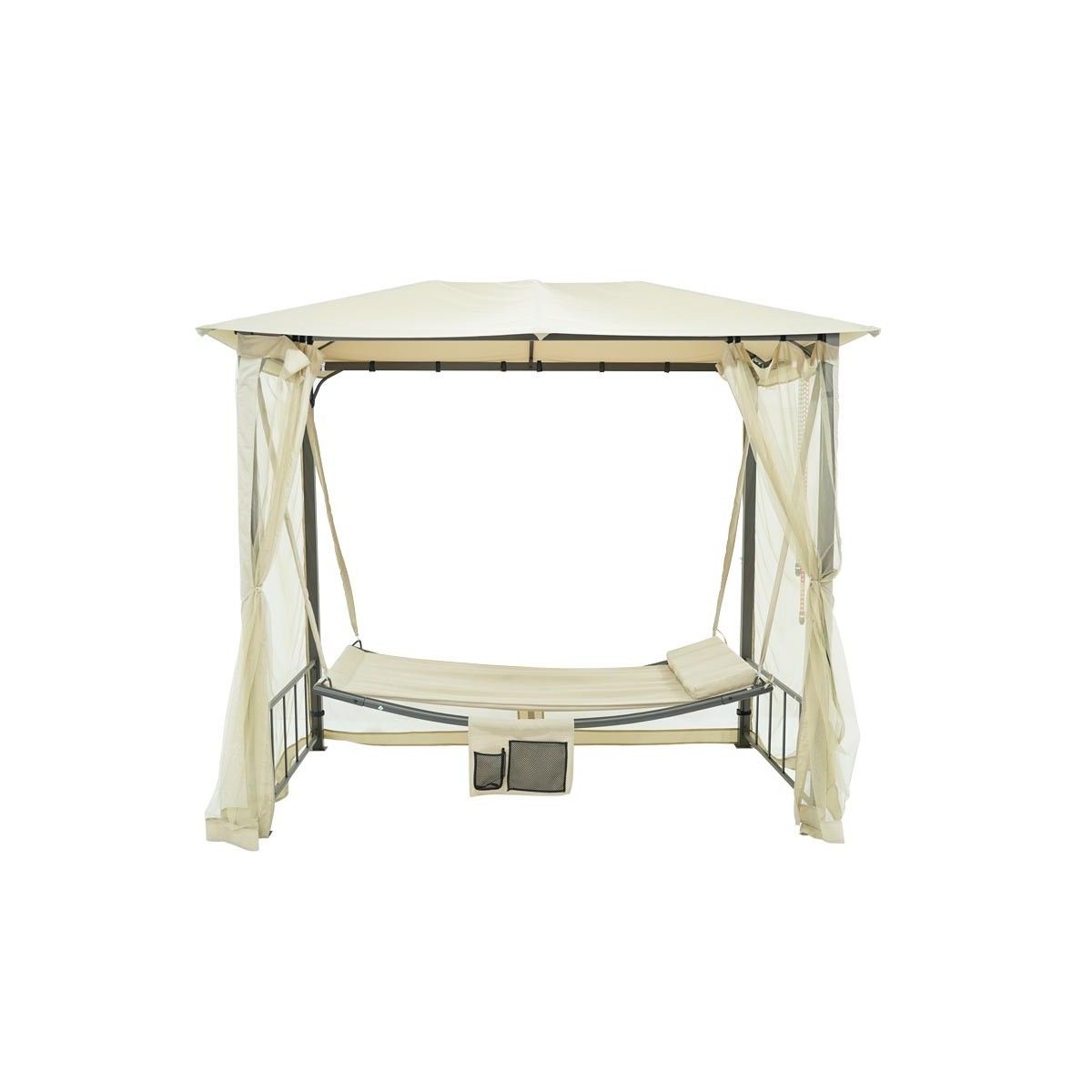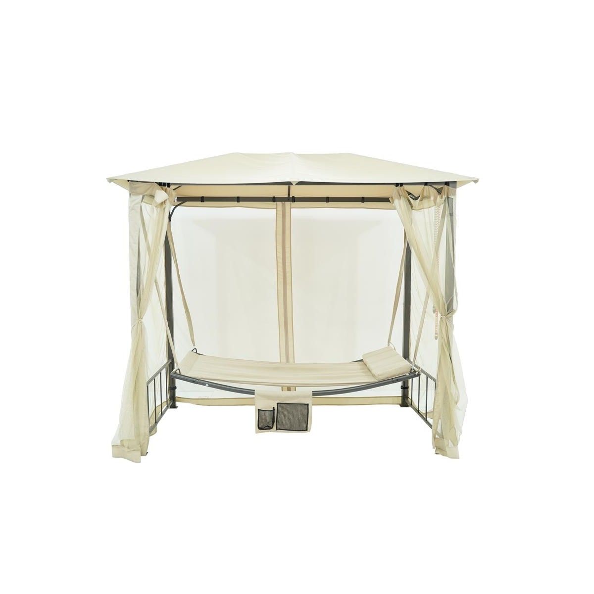 Dondolo Gazebo da Giardino con Zanzariera in Acciaio Beige