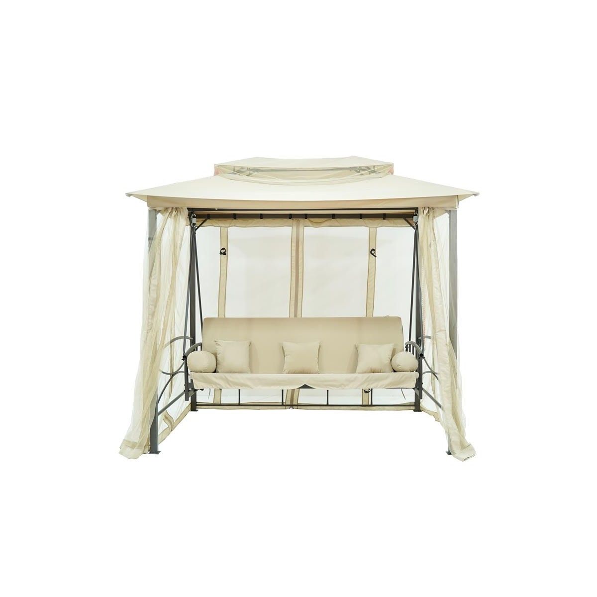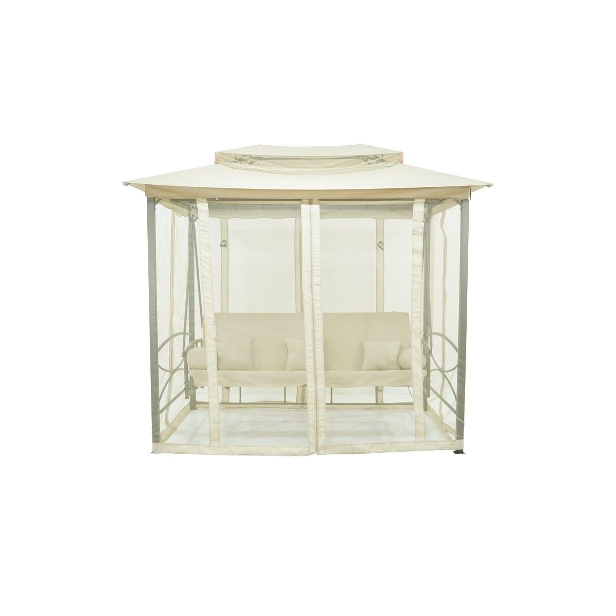 Dondolo Gazebo da Giardino con Zanzariera in Acciaio Beige