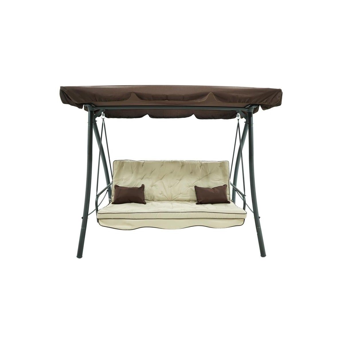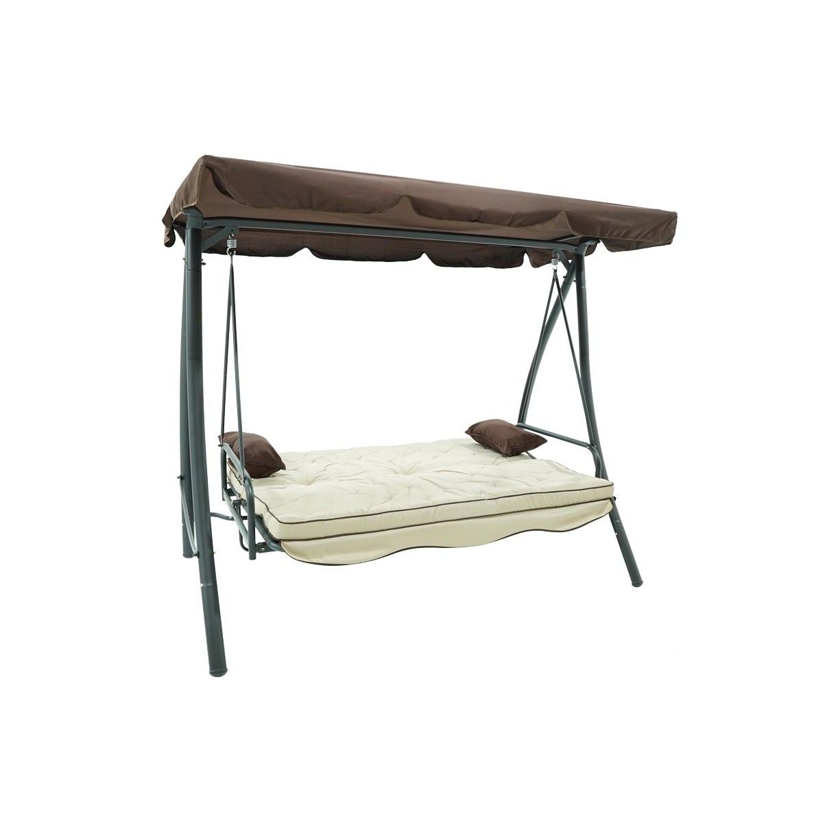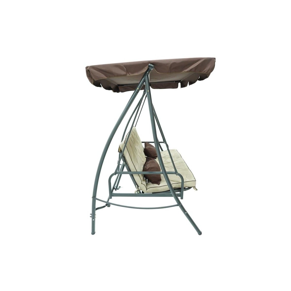 Dondolo Letto da Giardino 3 Posti con Tettuccio Parasole Grigio e Marrone