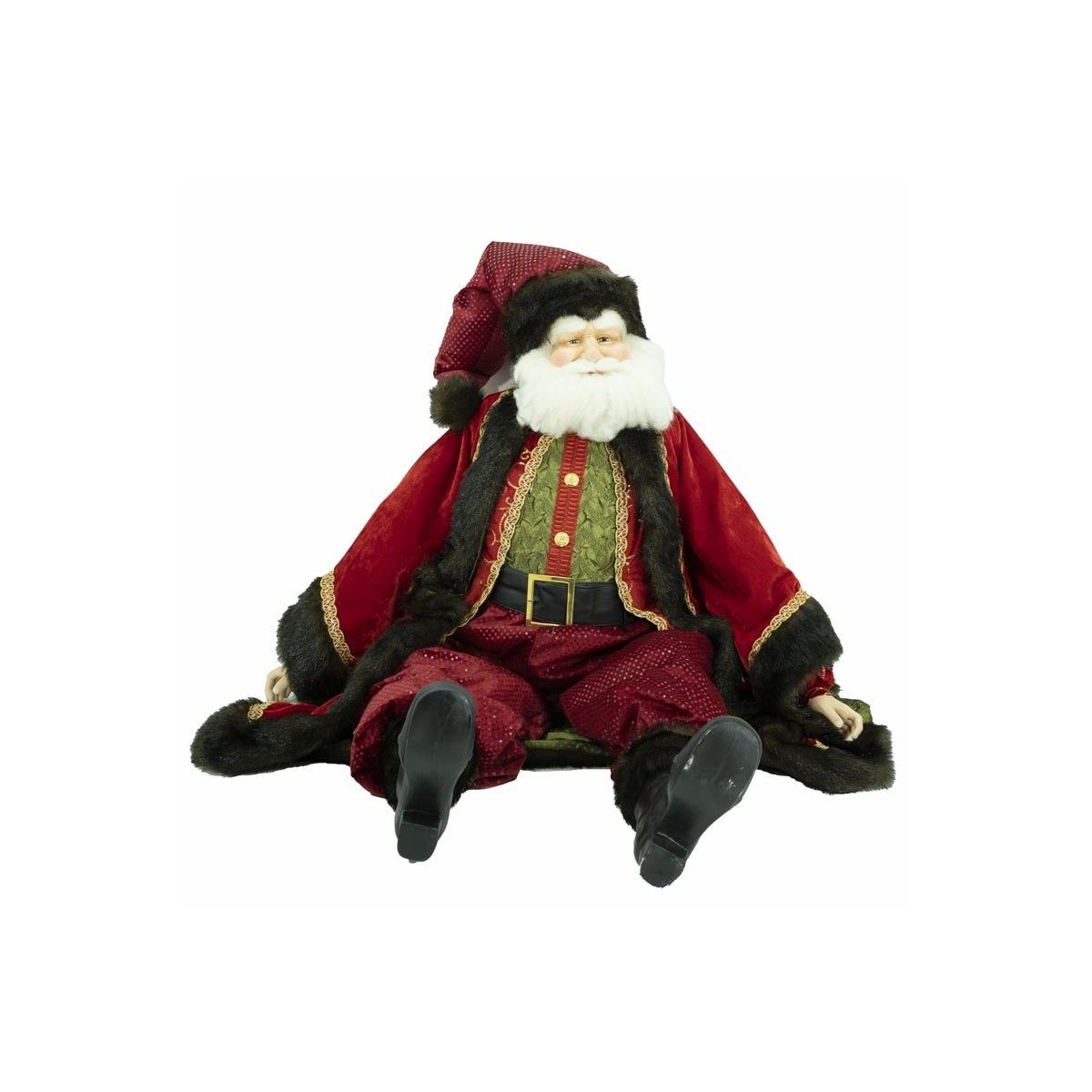 Babbo Natale Seduto con Abito Rosso e Verde H.122 cm