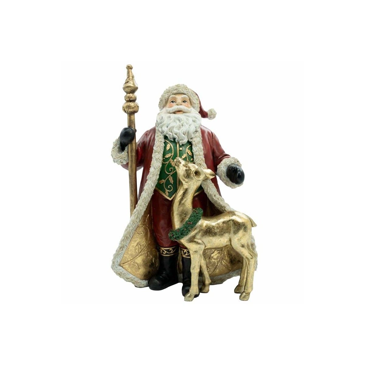 Babbo Natale con Renna in Resina H.30 cm