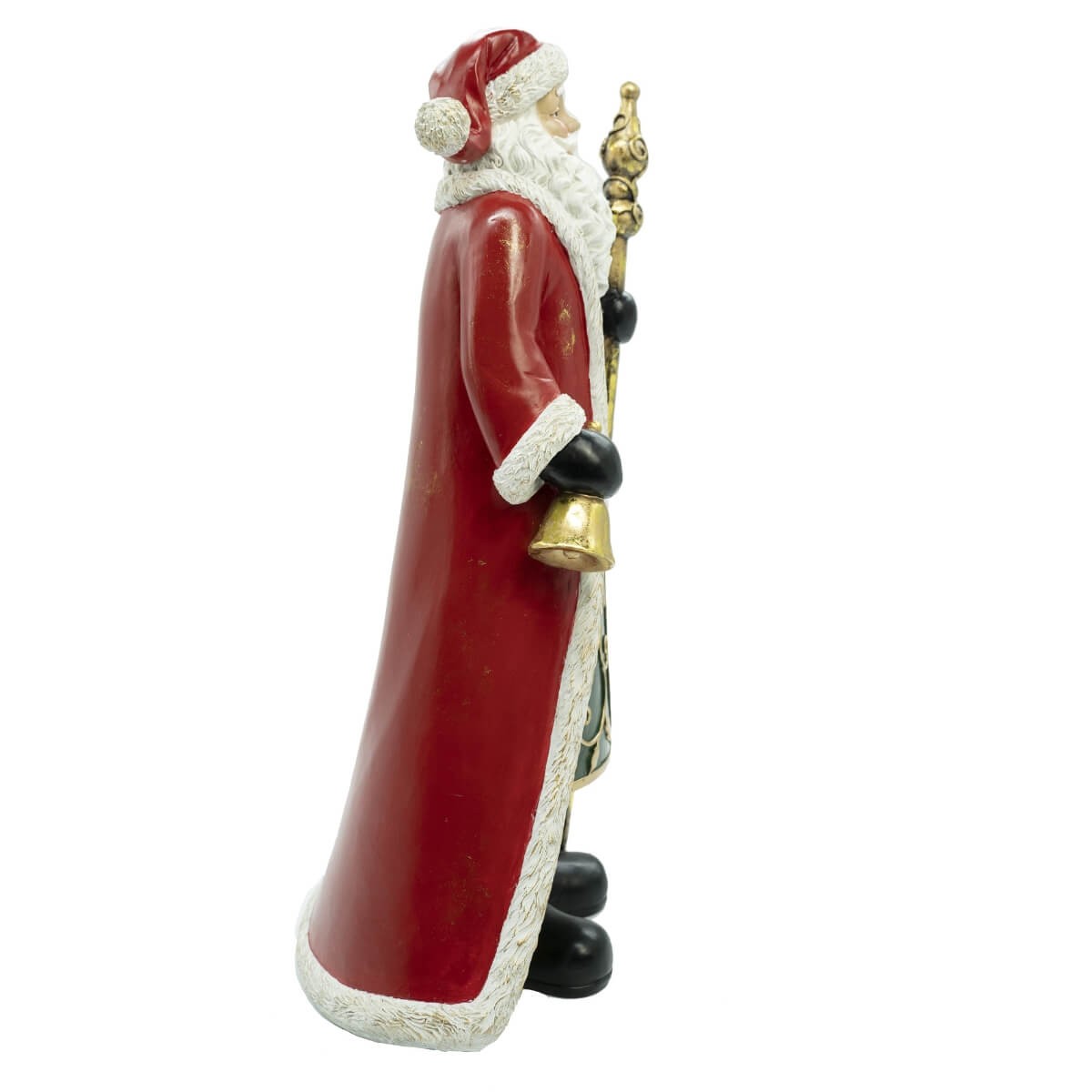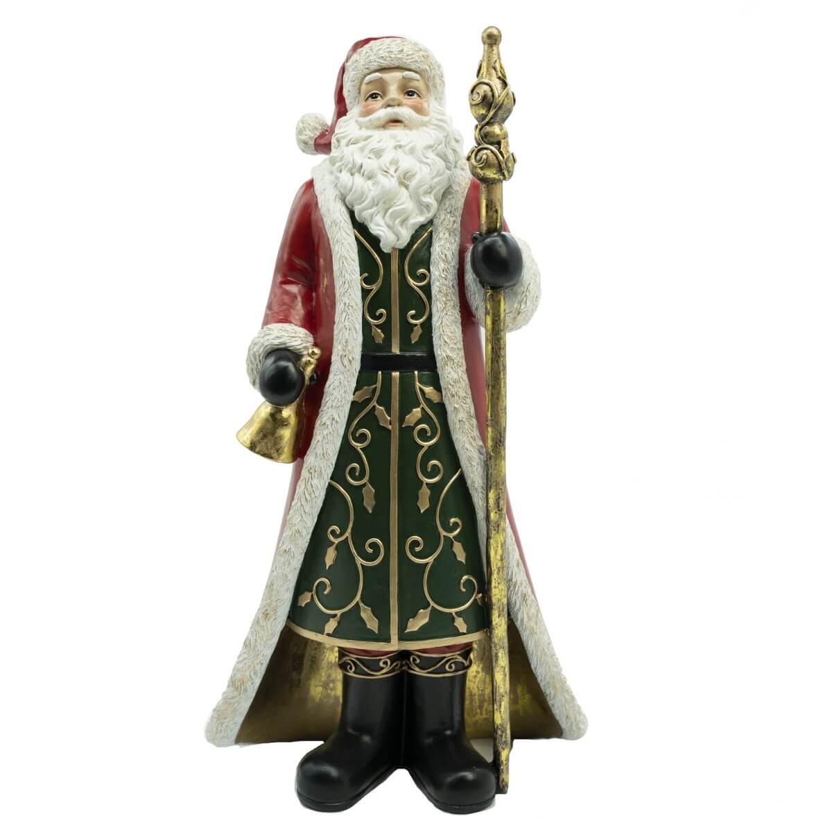 Babbo Natale Decorativo in Resina con Mantello Rosso e Bastone Oro – Statua Natalizia H.37 cm