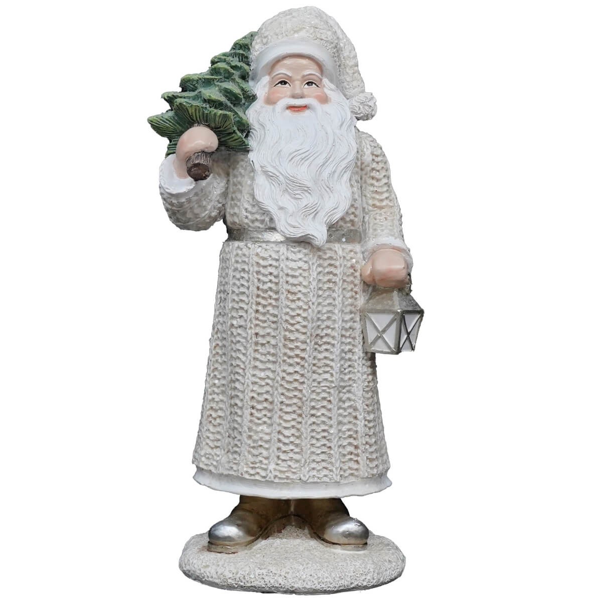 - Design dettagliato: Babbo Natale con cappotto effetto maglia, alberello sulla spalla e lanterna in mano