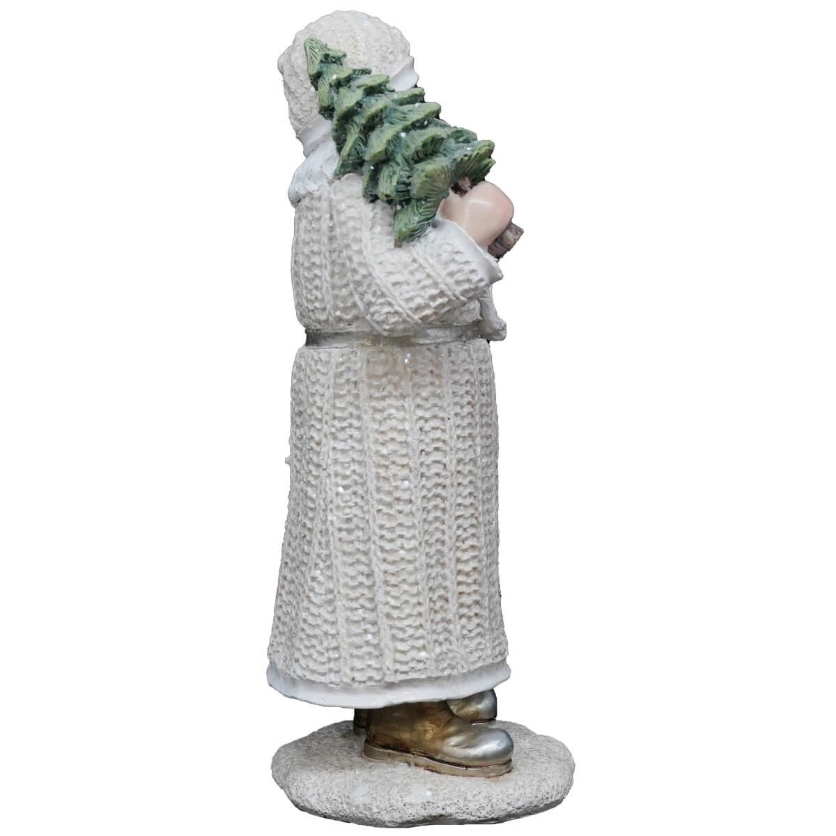 Porta la magia delle feste nella tua casa con questa raffinata decorazione natalizia raffigurante Babbo Natale con alberello. Realizzato in resina resistente, questo elegante soggetto da 18 cm è curato nei minimi dettagli: Babbo Natale indossa un cappotto effetto lana intrecciata, tiene un alberello verde sulla spalla e una lanterna nella mano, simboli classici del Natale.