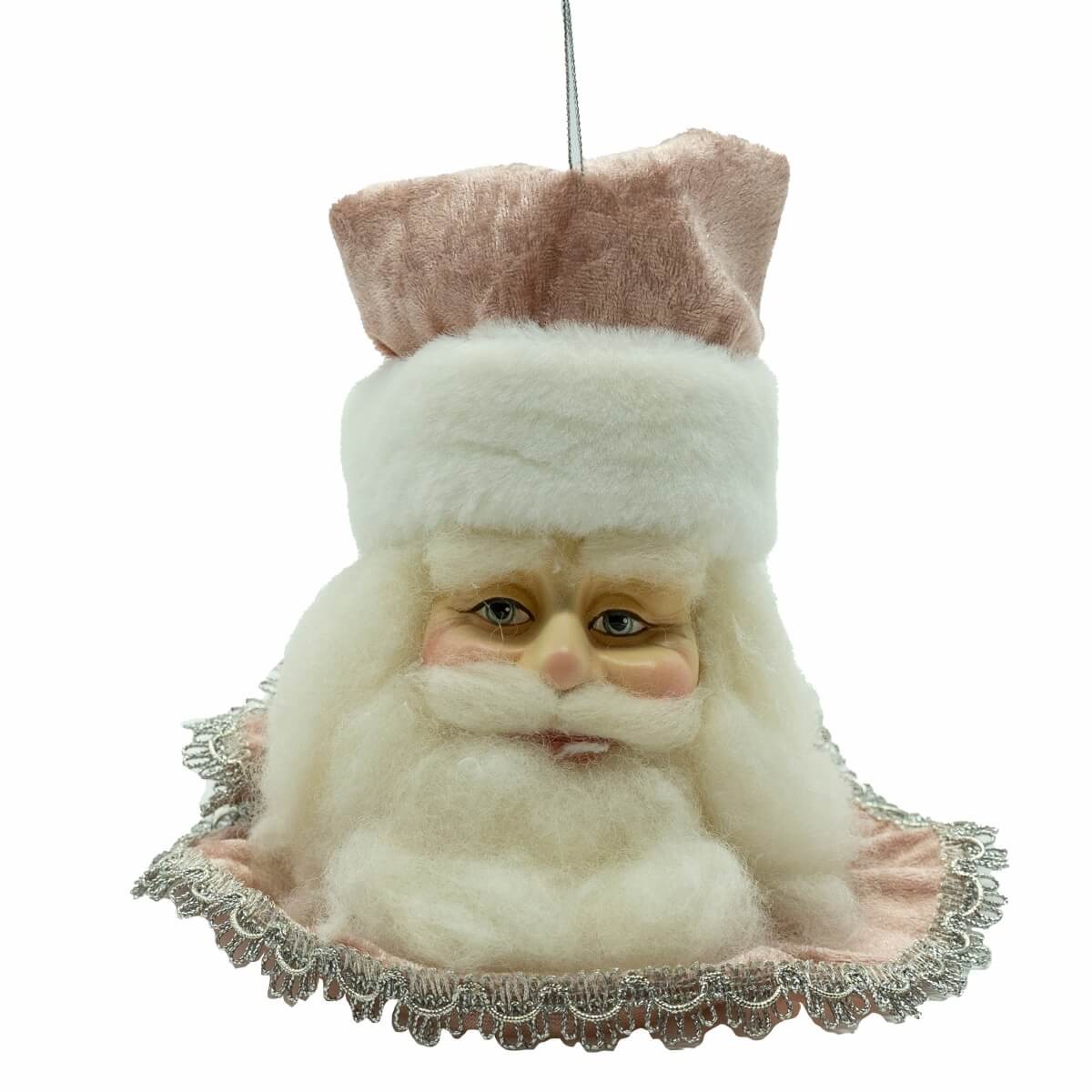 Testa di Babbo Natale da Appendere in Tessuto – Decorazione Natalizia Rosa o Blu H.13 cm