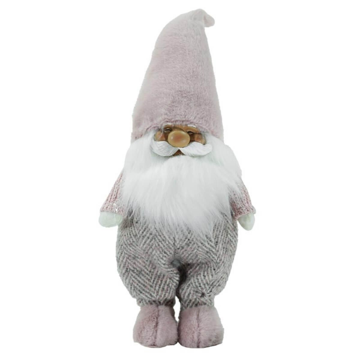 Babbo Natale in Piedi Rosa e Grigio – Decorazione Natalizia Elegante H.41,5 cm