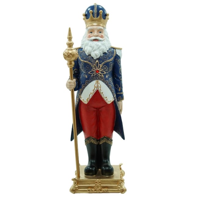 Babbo Natale Decorativo su Piedistallo con Corona e Scettro – H.92 cm in Resina (Disponibile in Rosso o Blu)