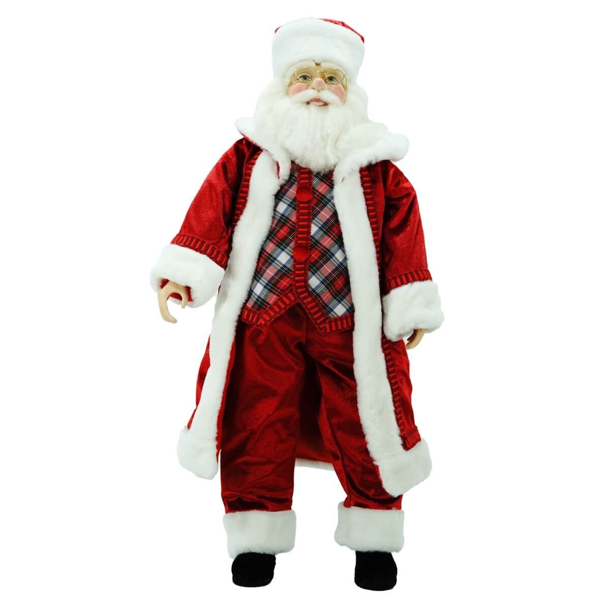 Babbo Natale in Piedi H.60 cm – Abito Rosso con Gilet a Quadri – Decorazione Natalizia da Interno
