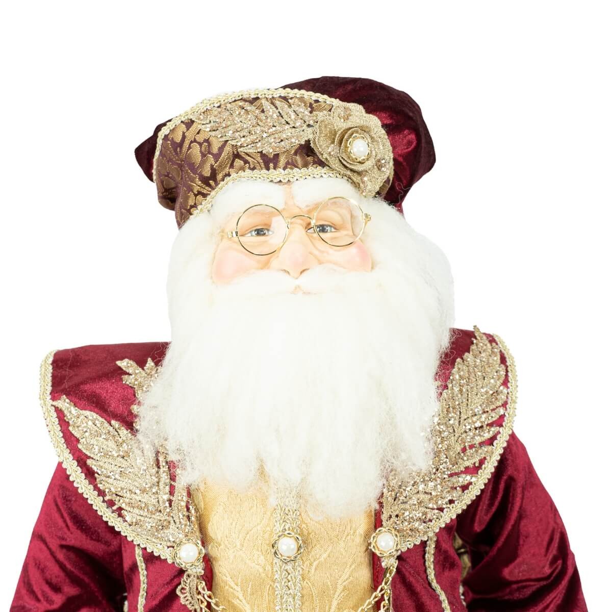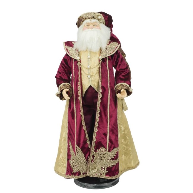 Babbo Natale con Abito in Velluto Burgundy e Oro H.80 cm