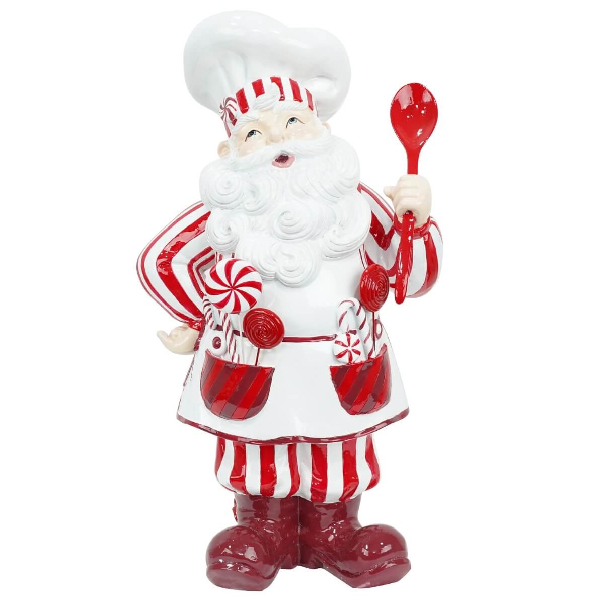 Babbo Natale Cuoco in Resina – Decorazione Natalizia Bianco e Rosso H.47 cm
