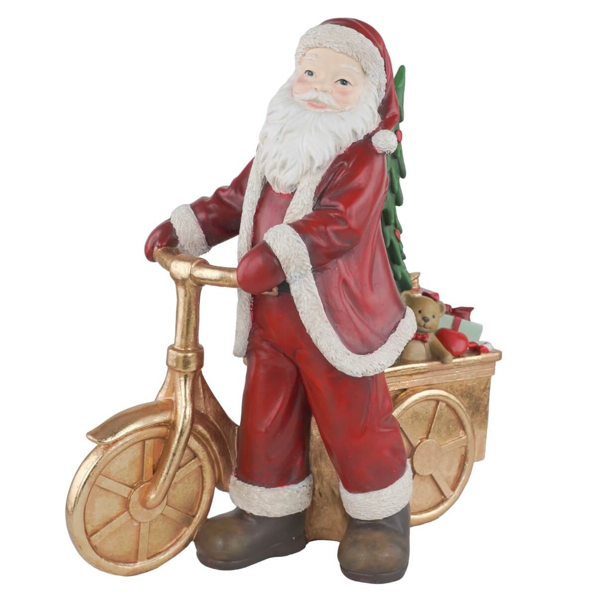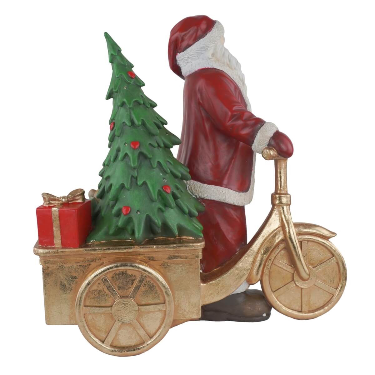 Babbo Natale con Bici Dorata in Resina – Decoro Natalizio 47,5x26xH.47,5 cm