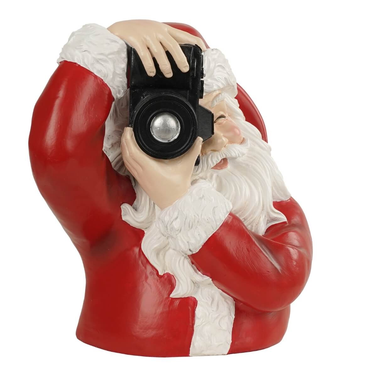 - Busto decorativo Babbo Natale con macchina fotografica, dal design allegro e originale.