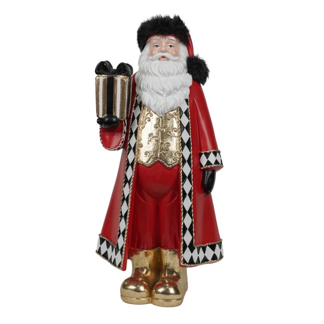 Babbo Natale Decorativo in Resina – Statua Natalizia Elegante con Dettagli Oro e Nero