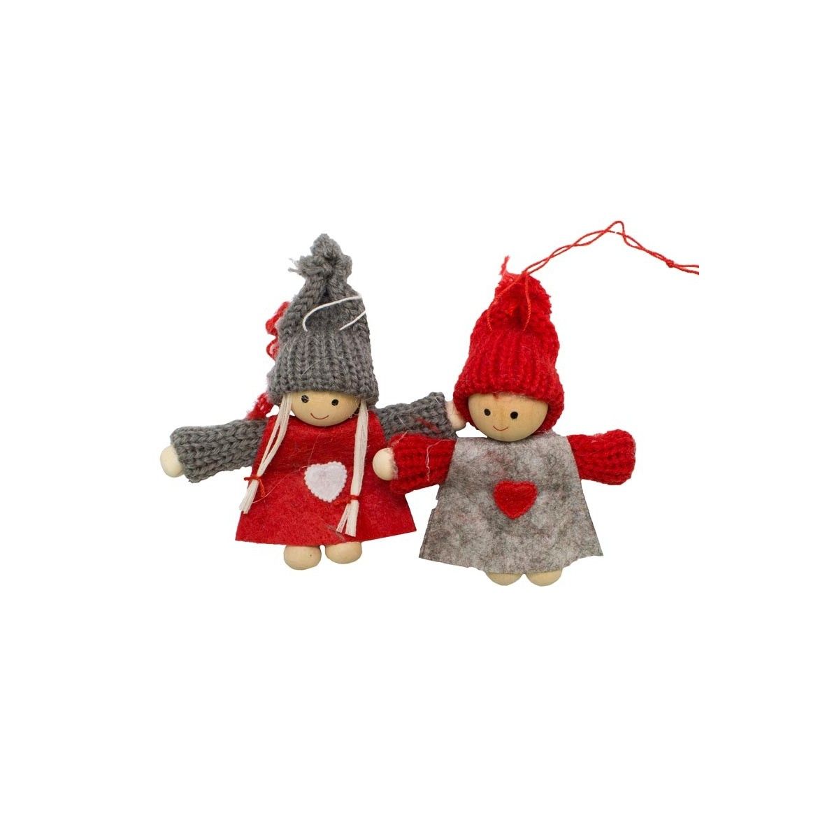 Box con Bimbo e Bimba Grigio/Rosso H.7 cm