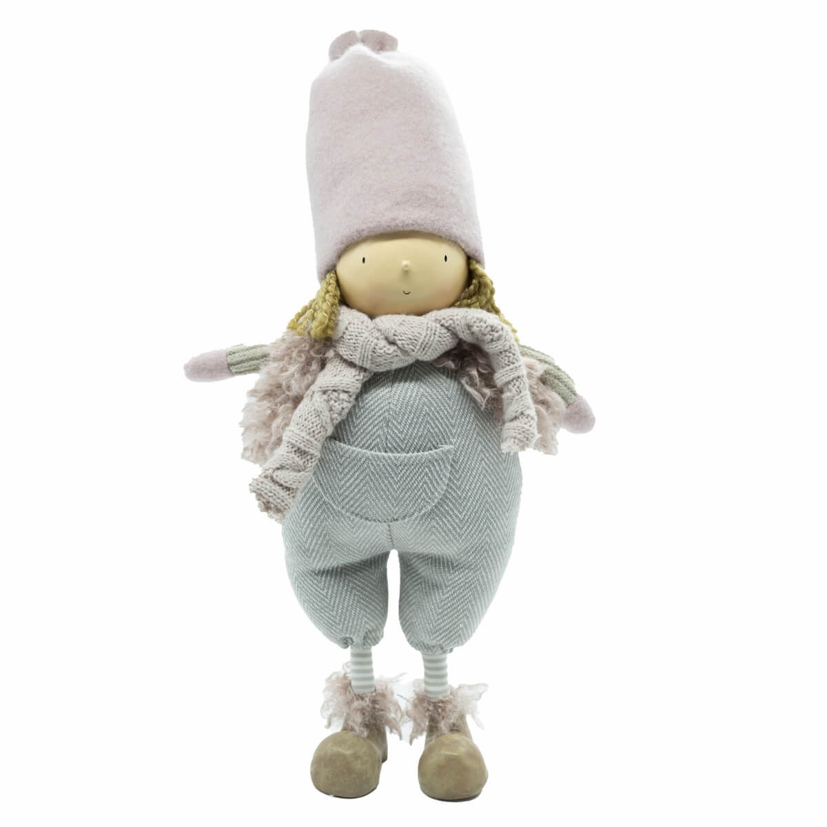 Bimbo Decorativo Natalizio 43 cm in Piedi con Abiti Rosa e Grigi