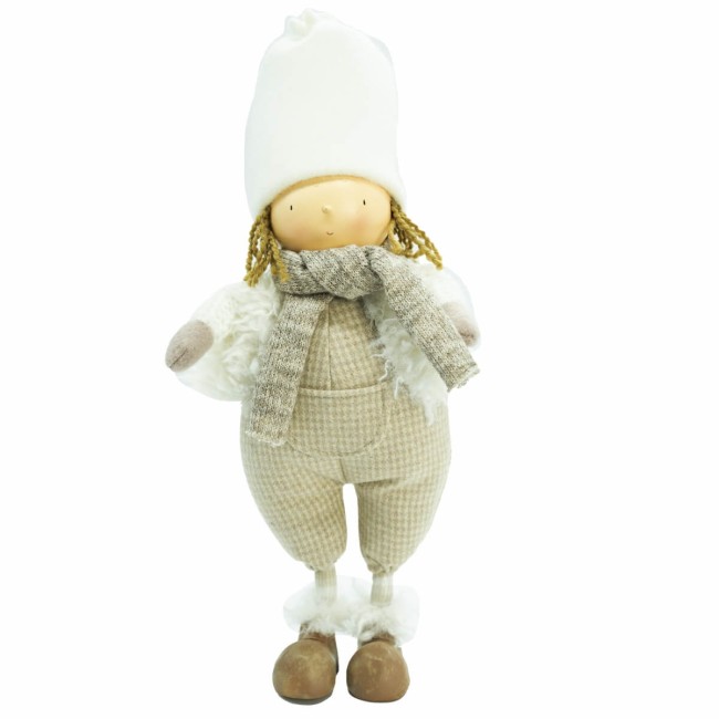 Bimbo Decorativo Natalizio H.43 cm in Piedi con Abiti Beige e Bianchi