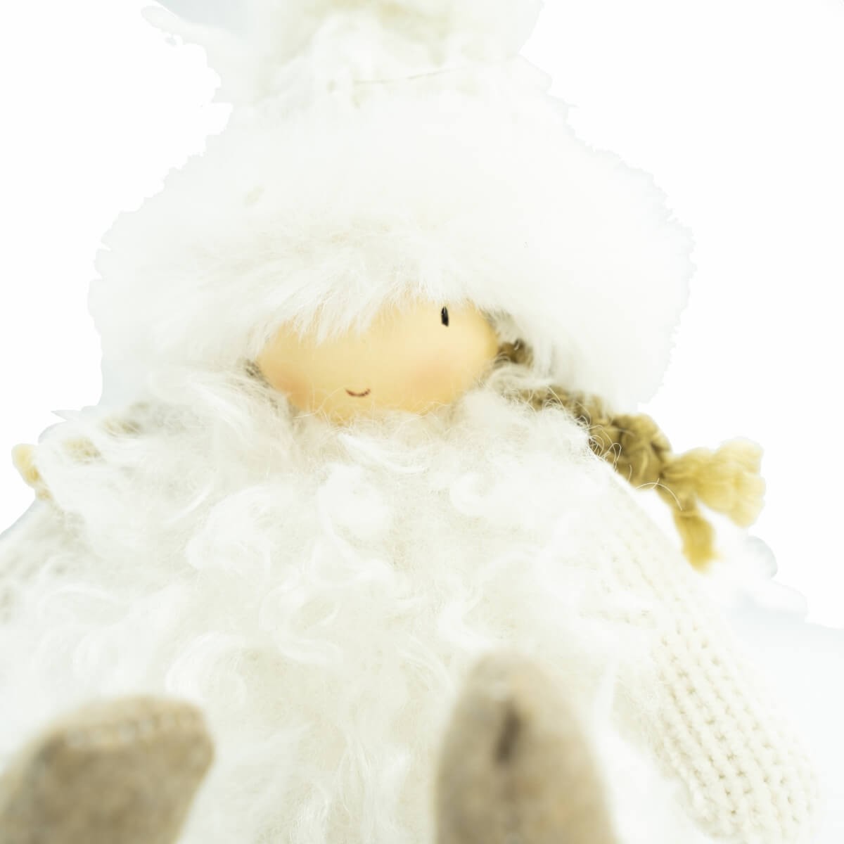 Porta la magia dell’inverno nei tuoi ambienti con questa dolcissima bimba decorativa vestita di bianco, alta 24 cm, caratterizzata da gambe morbide e flessibili che le permettono di essere posizionata seduta su mensole, mobili o camini. Il suo abito in pelliccia sintetica riccia, il cappello in lana con pompon e le treccine bionde la rendono un perfetto complemento natalizio in stile nordico e romantico.