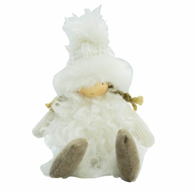 Bimba Natalizia Seduta con Gambe Morbide – H.24 cm Bianco Inverno