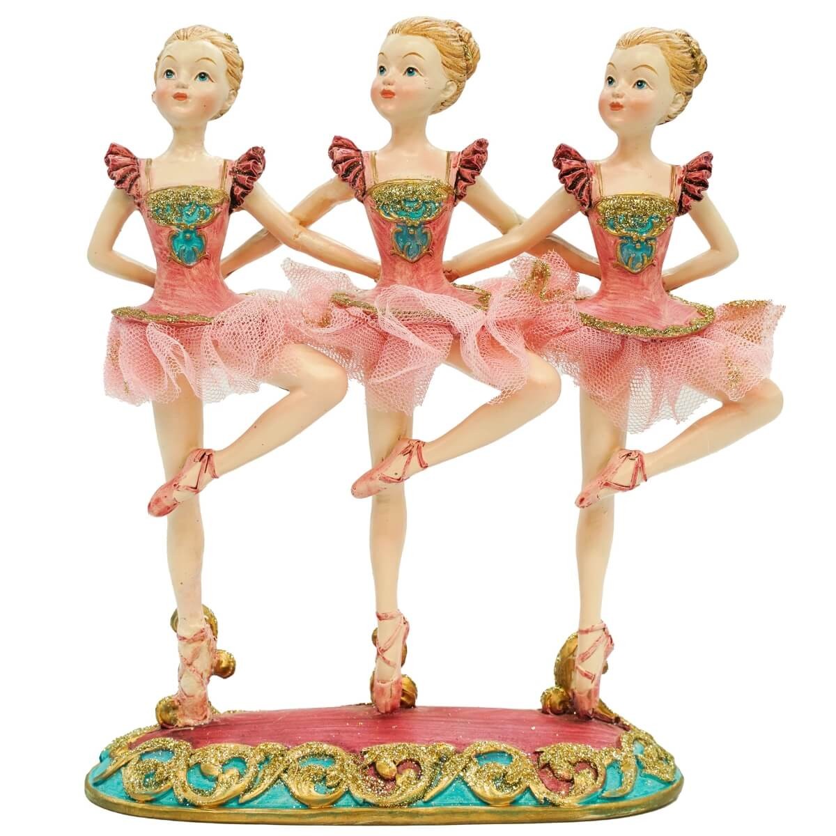 Trio di Ballerine Natalizie in Resina con Abito Rosa e Oro – H.20 cm