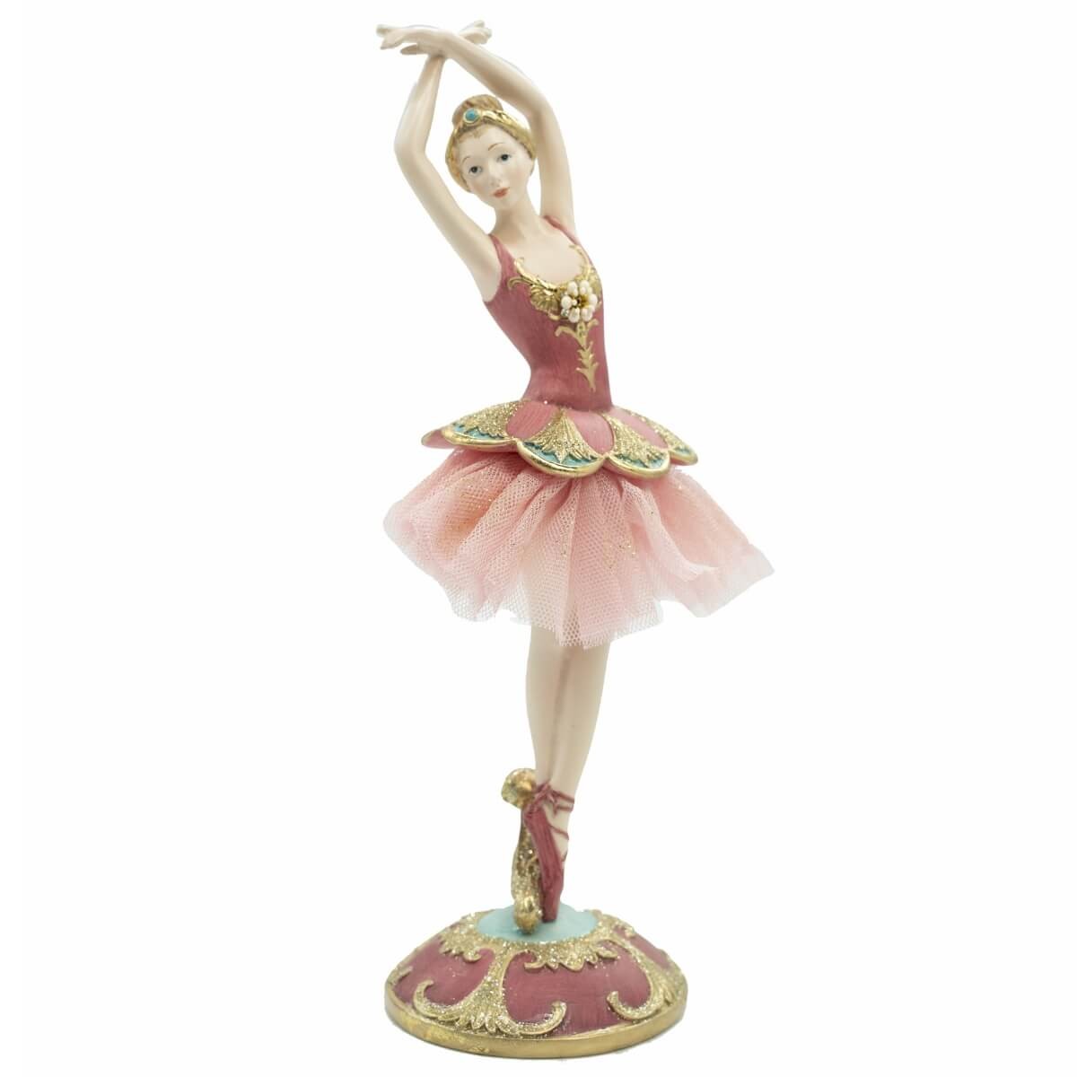 Ballerina in Resina sulle Punte con Abito Rosa e Oro H.27 cm