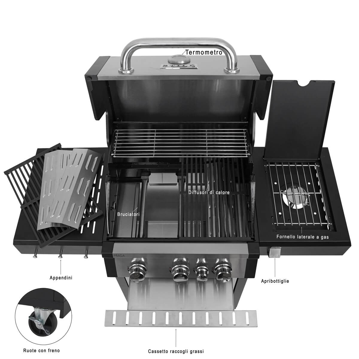 Barbecue a Gas 3 Fuochi con Fornello Laterale - Praga