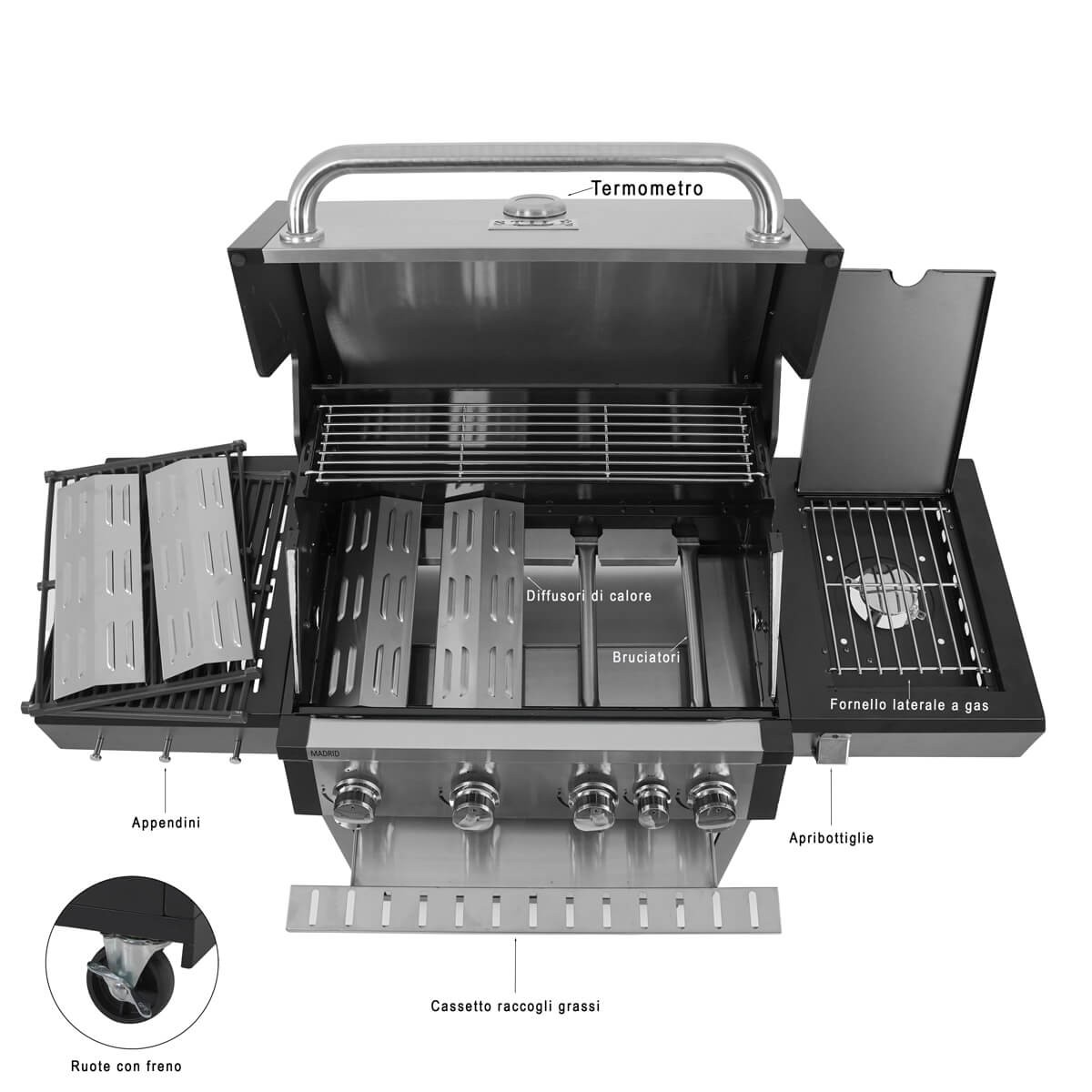 Barbecue a Gas 4 Fuochi con Fornello Laterale - Madrid
