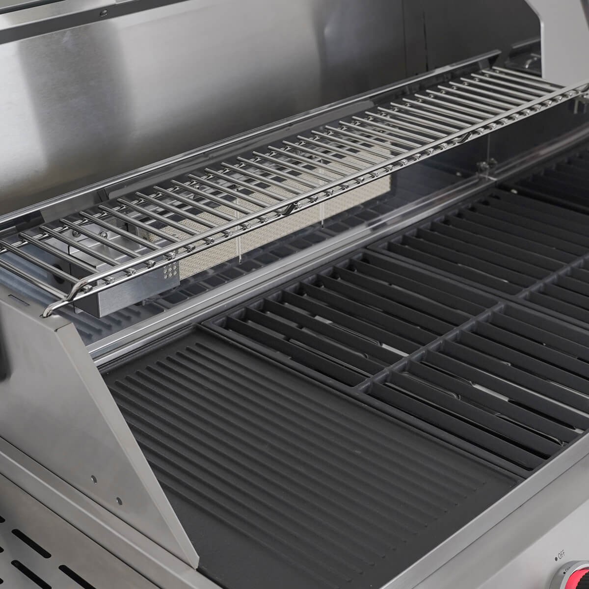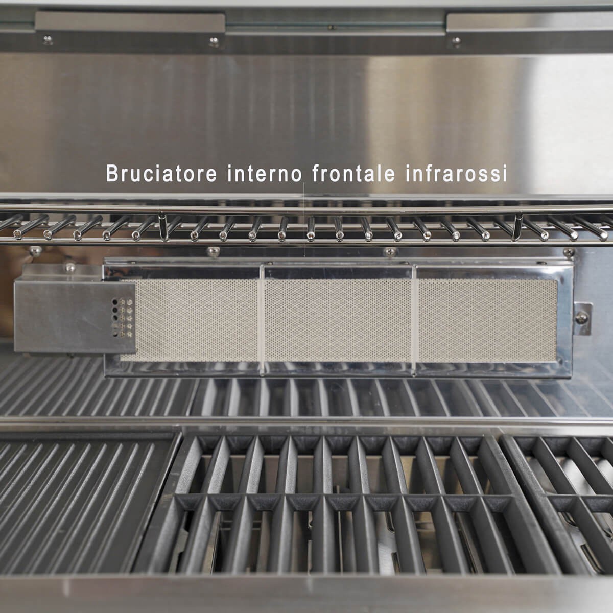 - Bruciatore interno frontale a infrarossi da 3.5 kW (39,5 x 9 cm), ideale per cotture intense e rosolature perfette