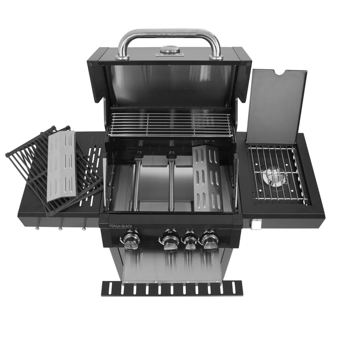 Barbecue a Gas PRAGA-BLACK 13,7 kW in Acciaio Inox con 3 Bruciatori + Fornello Laterale – Professionale con Griglie in Ghisa