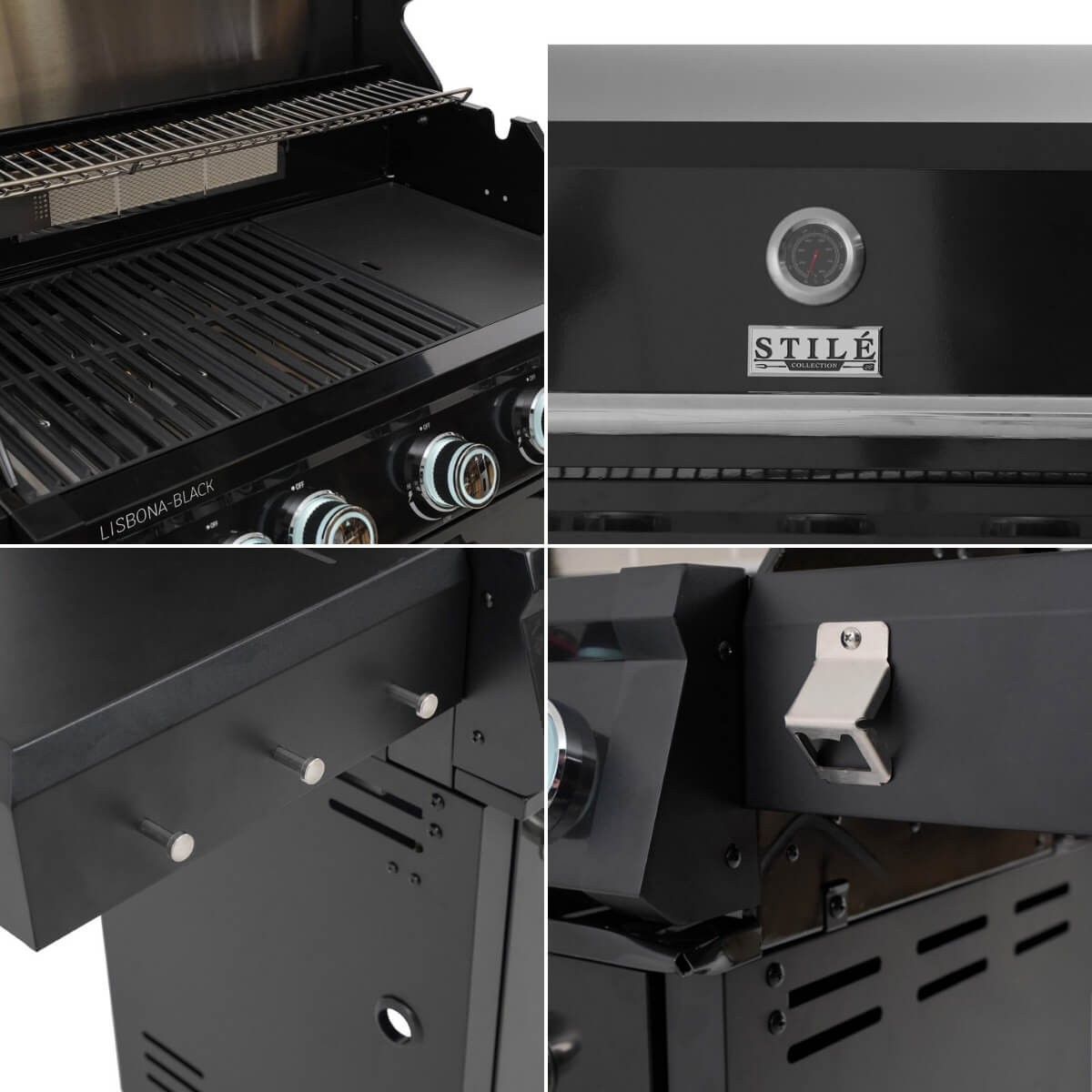 Barbecue a Gas 5 Fuochi con Fornello Laterale - Lisbona Black