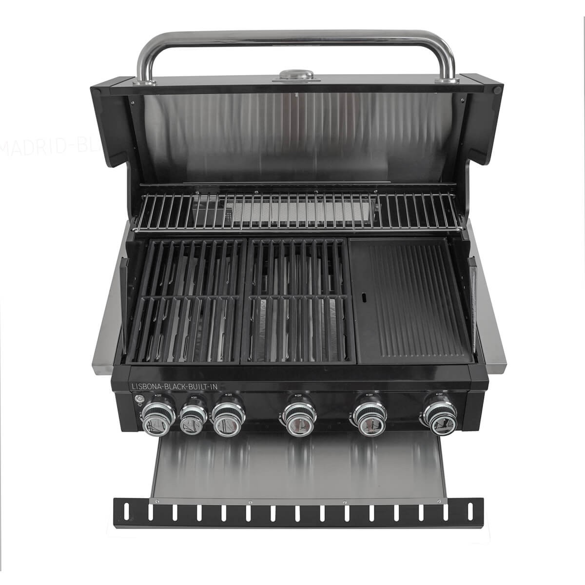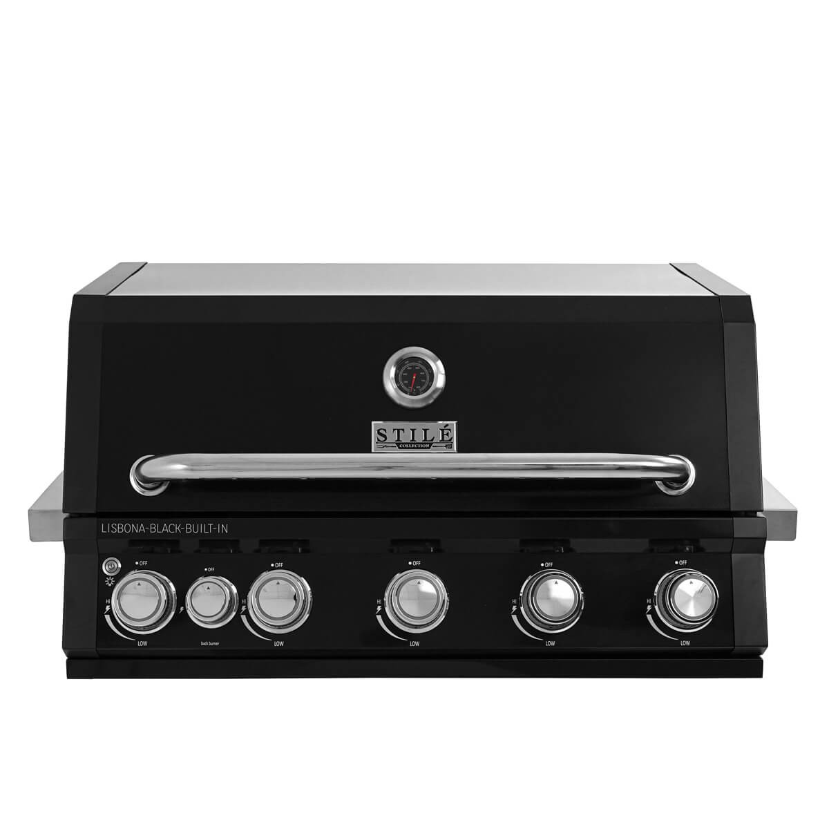 Barbecue a Gas da Incasso LISBONA-BLACK BUILT-IN 21 kW – 5 Bruciatori con Infrarossi, Griglie in Ghisa e LED Professionali