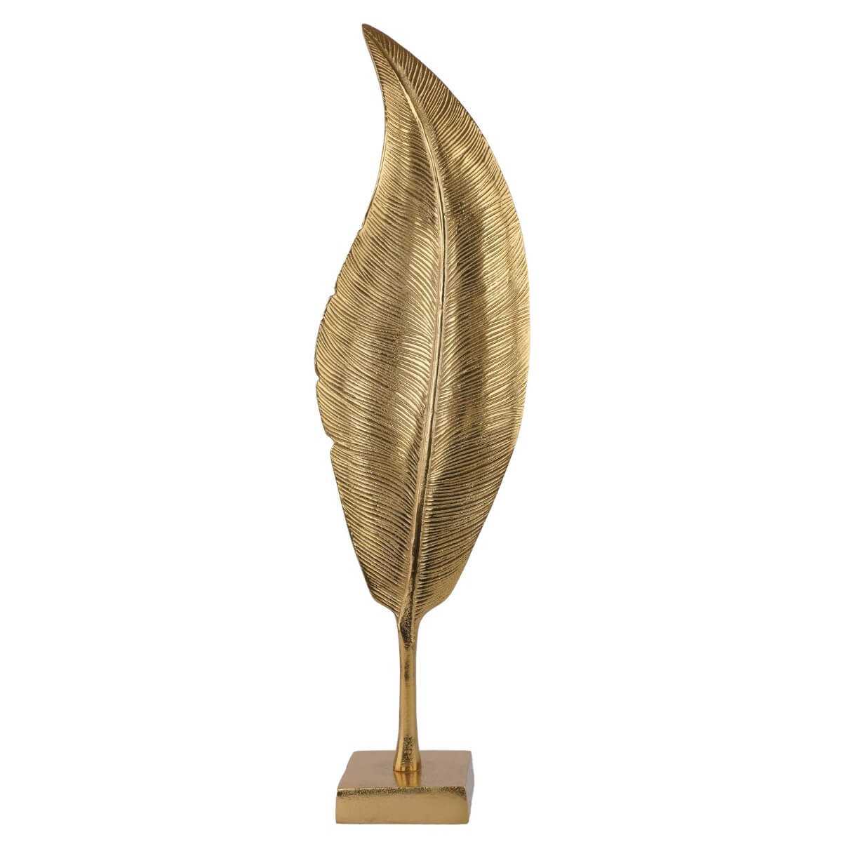 Scultura Decorativa a Forma di Foglia in Alluminio Dorato - Eleganza Naturale 17,5x11xH.62,5 cm