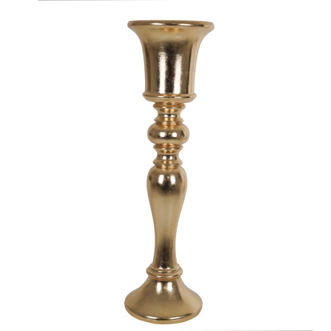 Scopri il raffinato candelabro dorato Stilé, un accessorio dallo stile senza tempo, realizzato in vetroresina per garantire eleganza e resistenza. Con un'altezza di 92 cm e un diametro di base di 26 cm, questo candelabro si distingue per la sua silhouette slanciata e la finitura oro lucente, ideale per valorizzare ogni ambiente. Il design classico si combina con dettagli curvilinei e una base stabile, rendendolo perfetto per tavole imbandite, centrotavola o angoli sofisticati.